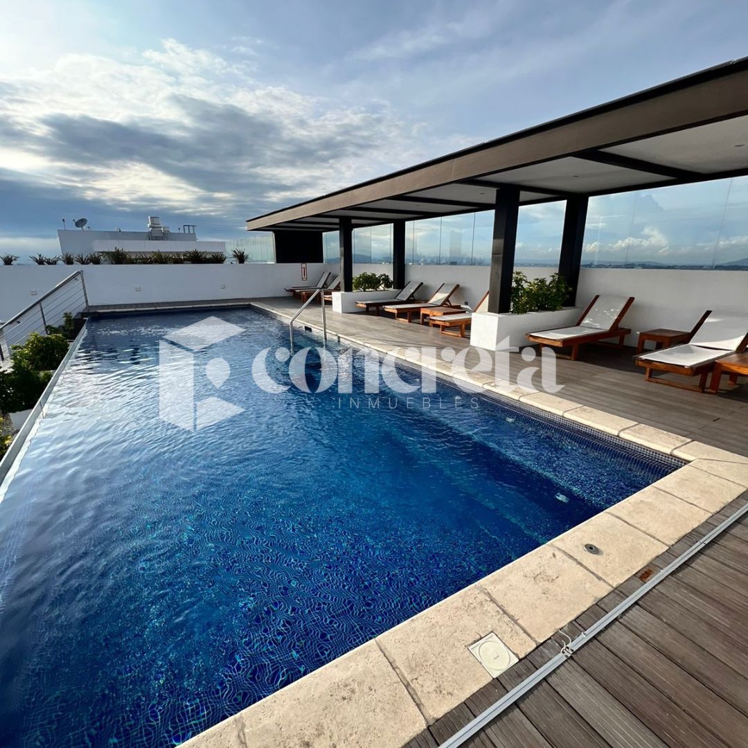 Amenidades: Piscina climatizada, Sports Bar Business Center, Pet Spa, BBQ Lounge, Sky lounge, Salón social, Gimnasio, Paseo verde Yoga deck, Lobby, Bus Stop, Mirador, Área piñatas, Coffee lounge, Área de juegos para Infantiles.